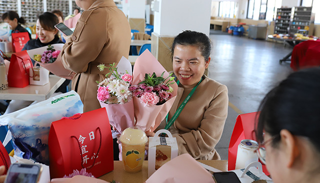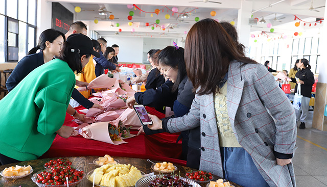 除了專屬禮品和鮮花(huā)外,公(gōng)司還為(wèi)每一位女神精(jīng)心準備了奶茶、蛋糕、水果、小(xiǎo)手工(gōng)零食。滿滿的節日儀式感讓女同胞們臉上洋溢着幸福的微笑。